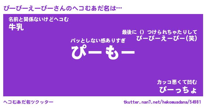 | ポケモン風あだ名 | 『ピーチュウ』『ピーピダネ』 |