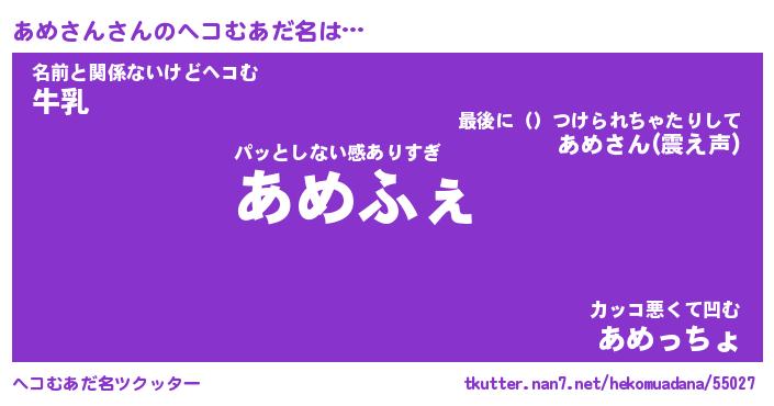 | 意味不明あだ名 | 『ペロリンあめさん』『永久保存あめさん』 |