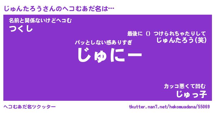 | 男性向けラノベタイトル風あだ名 | 『じゅんたろうの憂鬱』 |