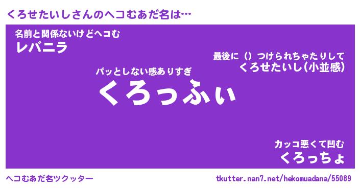 | 男性向けラノベタイトル風あだ名 | 『くろせたいしの憂鬱』 |