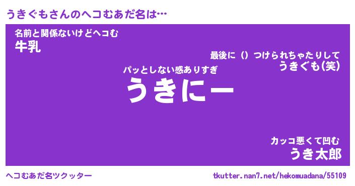 | 恥ずかしいあだ名 | 『プリティーうきぐも』『うきっちょ』 |