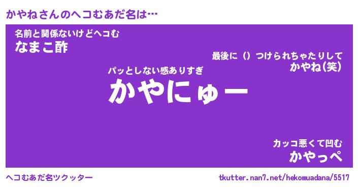 | ファンタジー風あだ名 | 『カヤフェル』『エターナルカヤネー』 |
