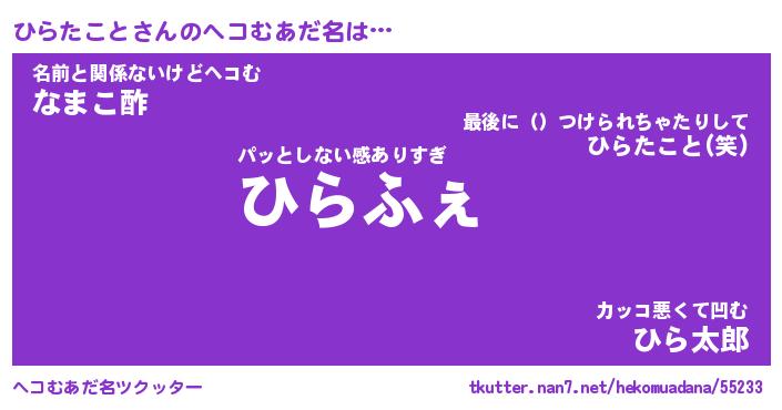 | ポケモン風あだ名 | 『ヒラチュウ』『ヒラタダネ』 |