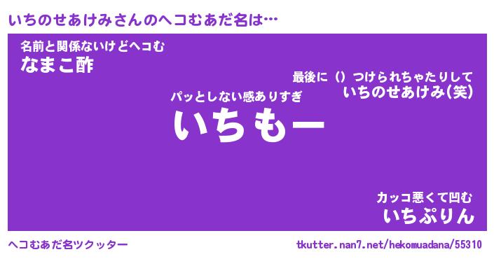 | ヒーロー風カッコイイあだ名 | 『スーパーイチノセアケミ』 |