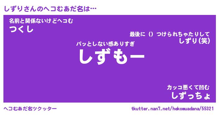 | 意味不明あだ名 | 『ペロリンしずり』『しずりフォーエバー』 |