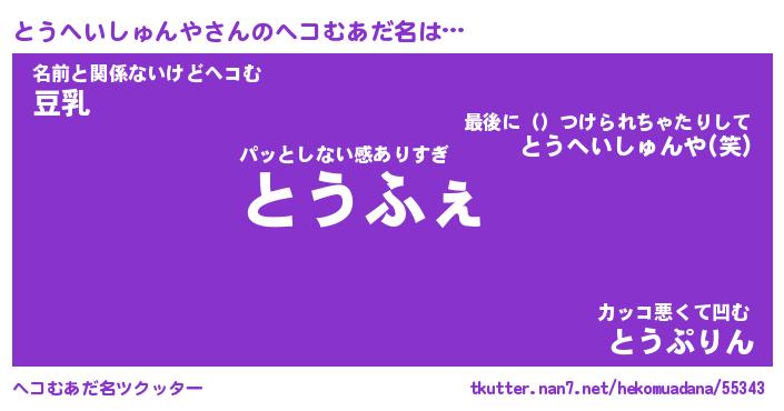 | ヒーロー風カッコイイあだ名 | 『スーパートウヘイシュンヤ』 |