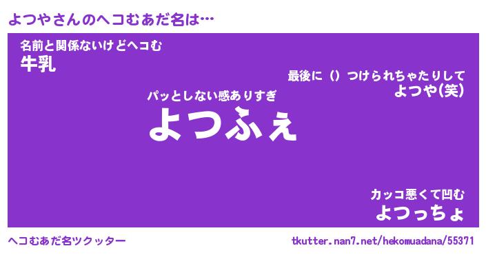 | 意味不明あだ名 | 『ペロリンよつや』『よつやフォーエバー』 |