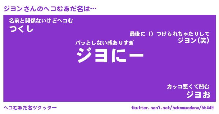 | 2回繰り返すあだ名 | 『ジヨジヨ』『ジジヨヨ』『ぬるぬる』 |