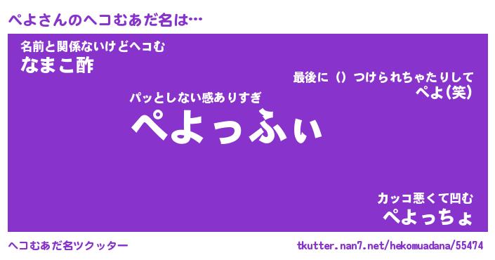 | ポケモン風あだ名 | 『ペヨチュウ』『ペヨダネ』『ヒペヨ』 |