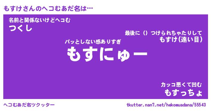 | 男性向けラノベタイトル風あだ名 | 『もすけの憂鬱』 |