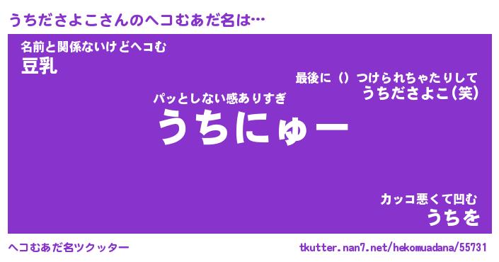 | ヒーロー風カッコイイあだ名 | 『スーパーウチダサヨコ』『天弓騎士ウチ』 |
