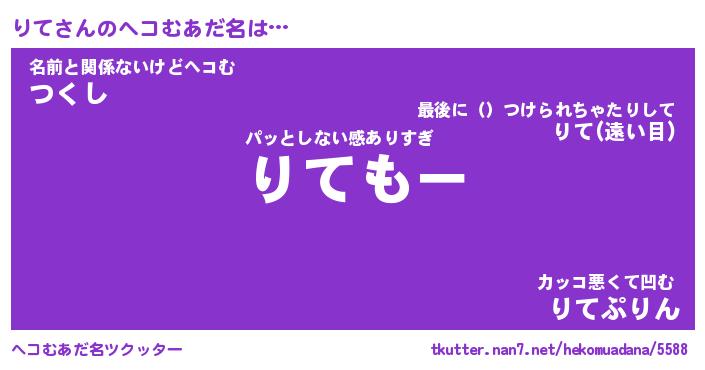 | 男性向けラノベタイトル風あだ名 | 『りての憂鬱』『ノーゲーム・ノーリテ』 |