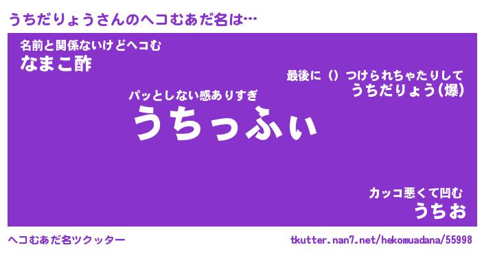| 男性向けラノベタイトル風あだ名 | 『うちだりょうの憂鬱』 |