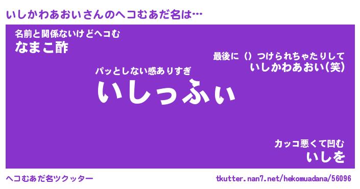 | 胡散臭い通販商品みたいなあだ名 | 『モテモテ間違いなし霊験あらたかなお札…その名も「いしかわあおい」』 |