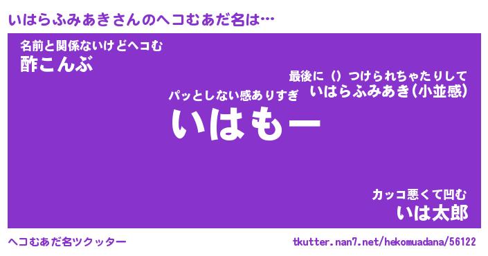 | 男性向けラノベタイトル風あだ名 | 『いはらふみあきの憂鬱』 |