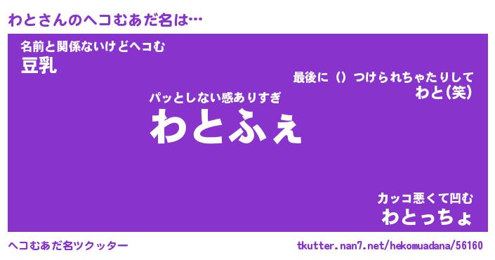 | 男性向けラノベタイトル風あだ名 | 『わとの憂鬱』『ノーゲーム・ノーワト』 |