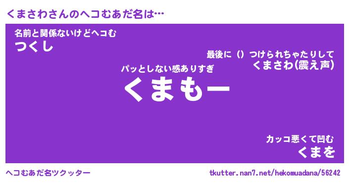 | ヒーロー風カッコイイあだ名 | 『スーパークマサワ』『炎刃騎士クマ』 |