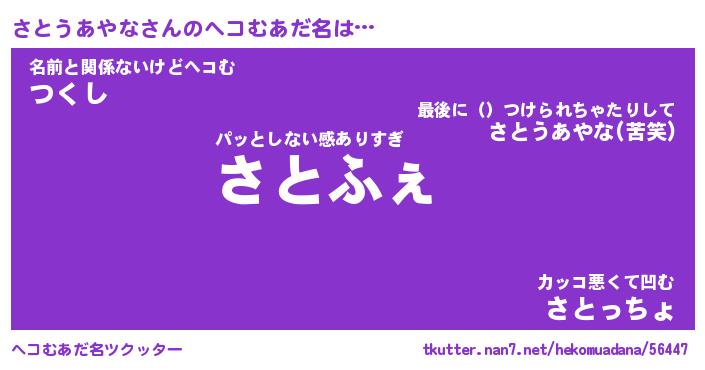 | 意味不明あだ名 | 『ペロリンさとうあやな』 |