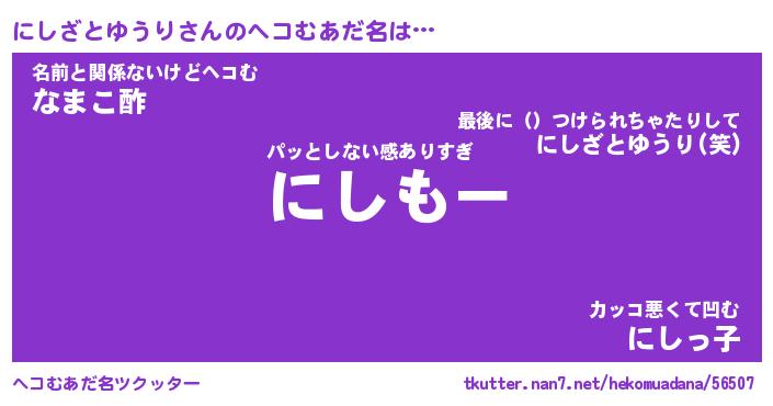 | ポケモン風あだ名 | 『ニシチュウ』『ニシザダネ』 |
