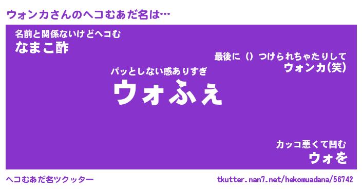 | 意味不明あだ名 | 『ペロリンウォンカ』『永久保存ウォンカ』 |