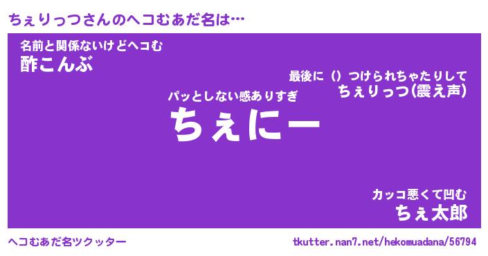| 2回繰り返すあだ名 | 『ちぇちぇ』『ちちぇぇ』『うろうろ』 |