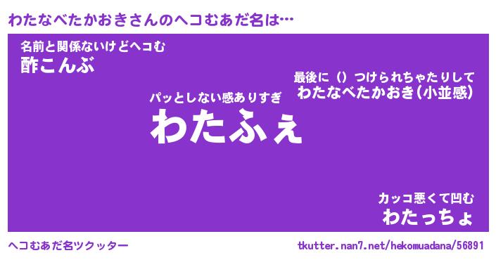| ポケモン風あだ名 | 『ワタチュウ』『ワタナダネ』 |