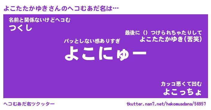 | 恥ずかしいあだ名 | 『プリティーよこたたかゆき』『よこちん』 |
