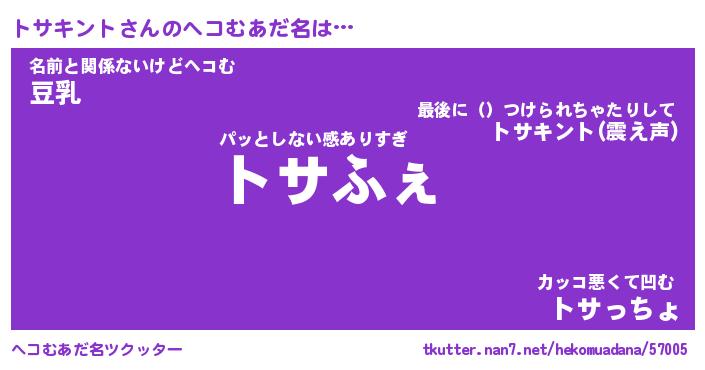 | ヒーロー風カッコイイあだ名 | 『スーパートサキント』『黄金騎士トサ』 |