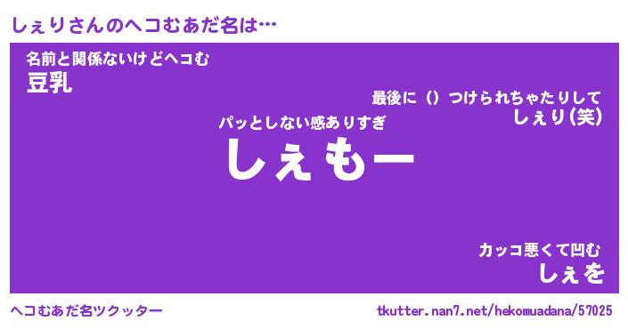 | 意味不明あだ名 | 『ペロリンしぇり』『しぇりフォーエバー』 |