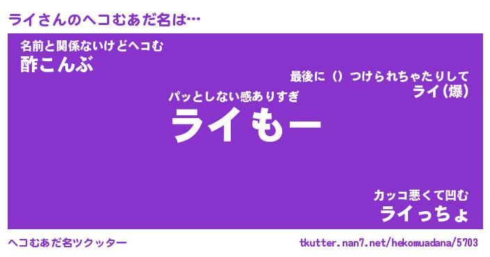 | 男性向けラノベタイトル風あだ名 | 『ライの憂鬱』『ノーゲーム・ノーライ』 |