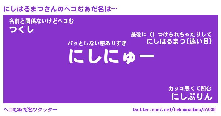 | ヒーロー風カッコイイあだ名 | 『スーパーニシハルマツ』『幻影騎士ニシ』 |