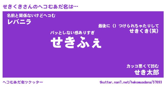 | 欧米人風あだ名 | 『マイケルせきくき』『ウサインせきくき』 |