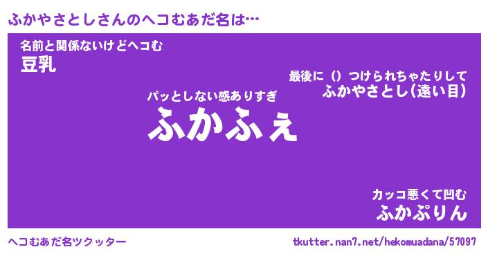 | ポケモン風あだ名 | 『フカチュウ』『フカヤダネ』 |