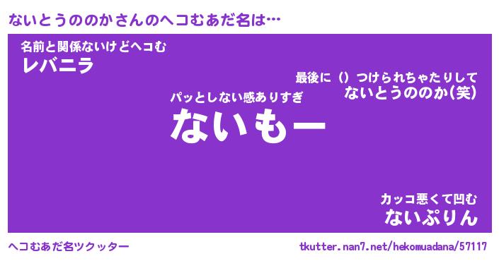 | 恥ずかしいあだ名 | 『プリティーないとうののか』『ないちん』 |