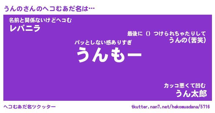 | ヒーロー風カッコイイあだ名 | 『スーパーウンノ』『ウルトラうんのマン』 |