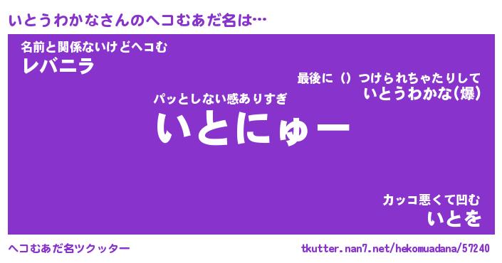 | 男性向けラノベタイトル風あだ名 | 『イトウワカナアートオンライン』 |
