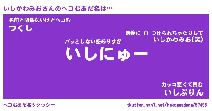 | ヒーロー風カッコイイあだ名 | 『スーパーイシカワミオ』『銀牙騎士イシ』 |