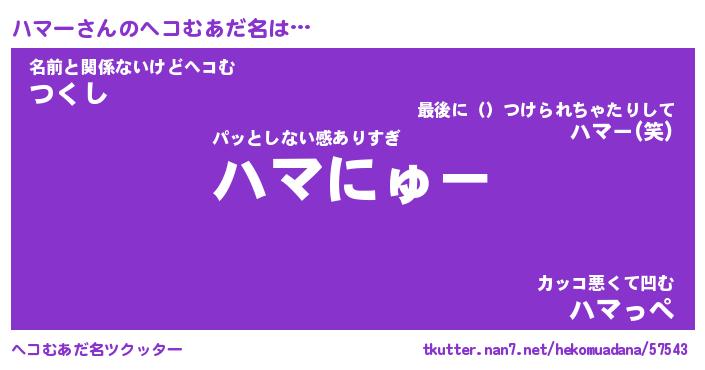 | ポケモン風あだ名 | 『ハマチュウ』『ハマーダネ』 |