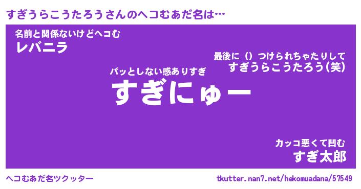 | ヒーロー風カッコイイあだ名 | 『スーパースギウラコウタロウ』 |