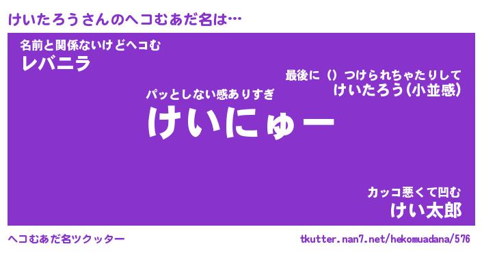 | ファンタジー風あだ名 | 『ケイフェル』『エターナルケイタロウー』 |