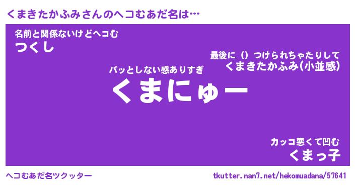 | ヒーロー風カッコイイあだ名 | 『スーパークマキタカフミ』 |