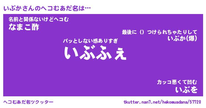 | ヒーロー風カッコイイあだ名 | 『スーパーイブカ』『ウルトラいぶかマン』 |