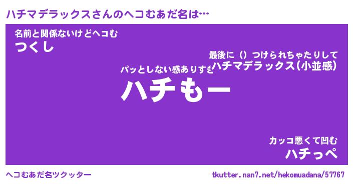 | 自動車の名前っぽいあだ名 | 『ハチティマ』『ハクア』『デミハ』 |