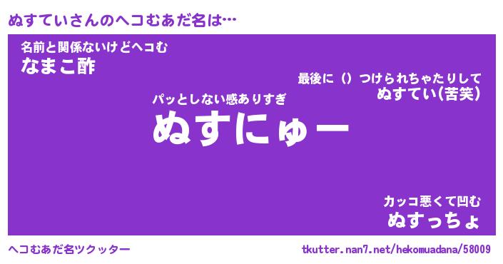 | ピコ太郎風あだ名 | 『ヌコ四郎』『ピヌ一郎』『ヌス八郎』 |