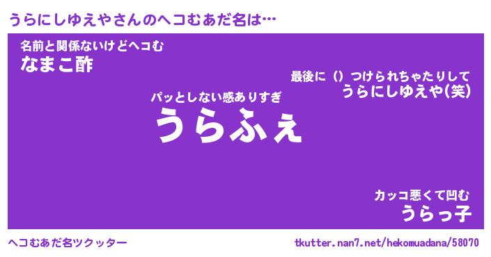 | ピコ太郎風あだ名 | 『ウコ一郎』『ピウ太郎』『ウラ二郎』 |