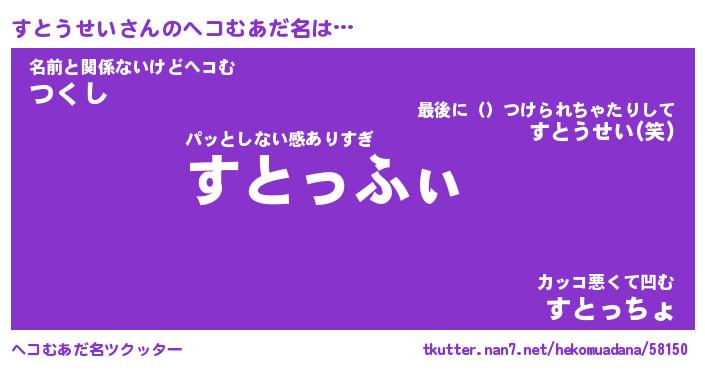 | ポケモン風あだ名 | 『ストチュウ』『ストウダネ』 |