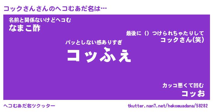 | ヒーロー風カッコイイあだ名 | 『スーパーコックサン』『天弓騎士コッ』 |