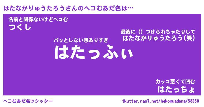 | 肩書あだ名 | 『はたなかりゅうたろう御曹司』 |
