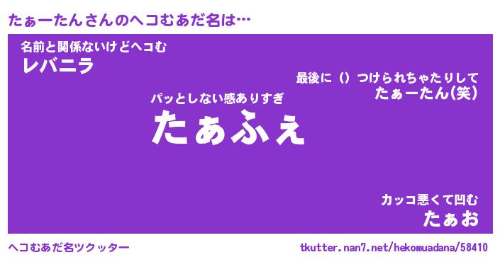 | ファンタジー風あだ名 | 『タァフェル』『エターナルタァータンー』 |