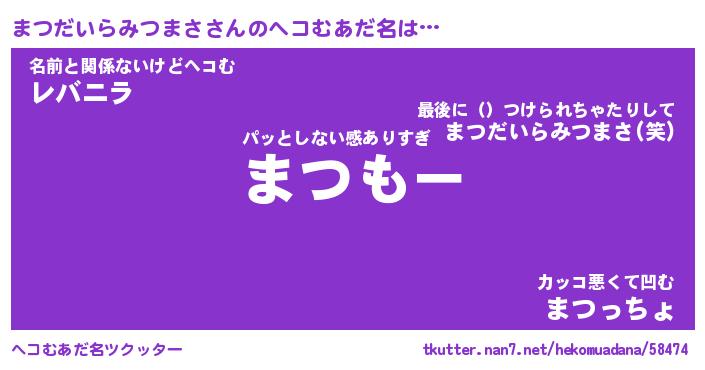 | 意味不明あだ名 | 『ペロリンまつだいらみつまさ』 |